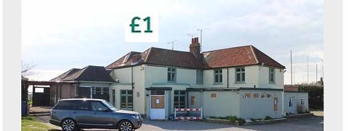 The once-thriving now lamented Mill Beach pub in Essex, UK, has been mysteriously put to market by its mystery owner for a token £1.