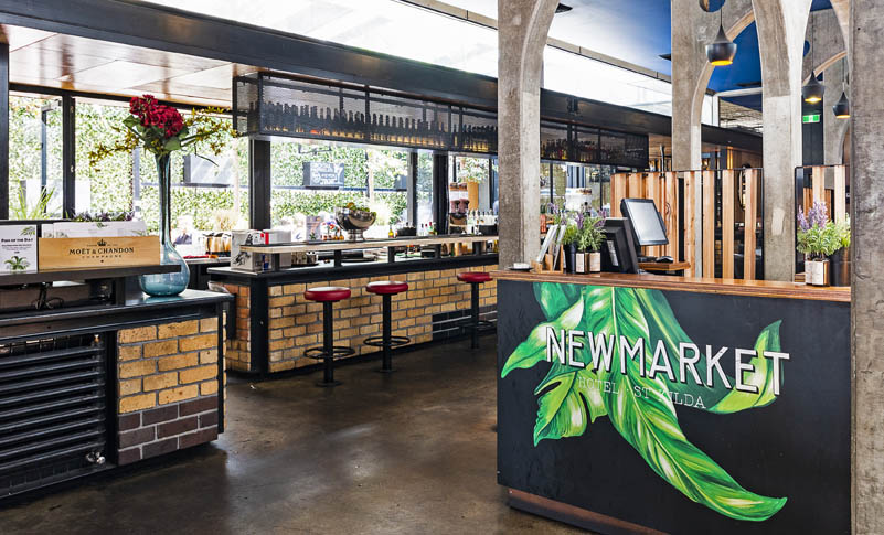 The Newmarket Hotel is a classic red brick two-storey structure that offers a nod to the traditional eclectic St Kilda, while “boasting its own urban style” courtesy of a sleek makeover designed by Six Degrees.