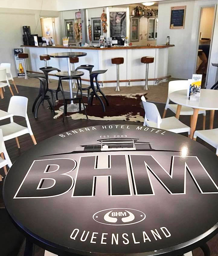 Banana Hotel-Motel is on main road Bowen Street, on a large 21,500sqm (2.15ha) site, comprising the single-story hotel and three detached accommodation buildings. It provides a public bar, dining room, Brew N Bake cafe, restaurant, drive-through bottleshop, and 20 motel rooms.