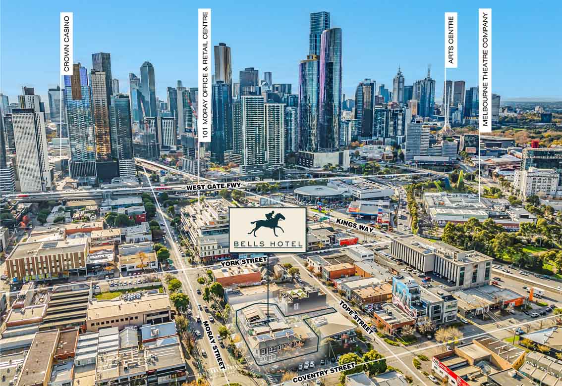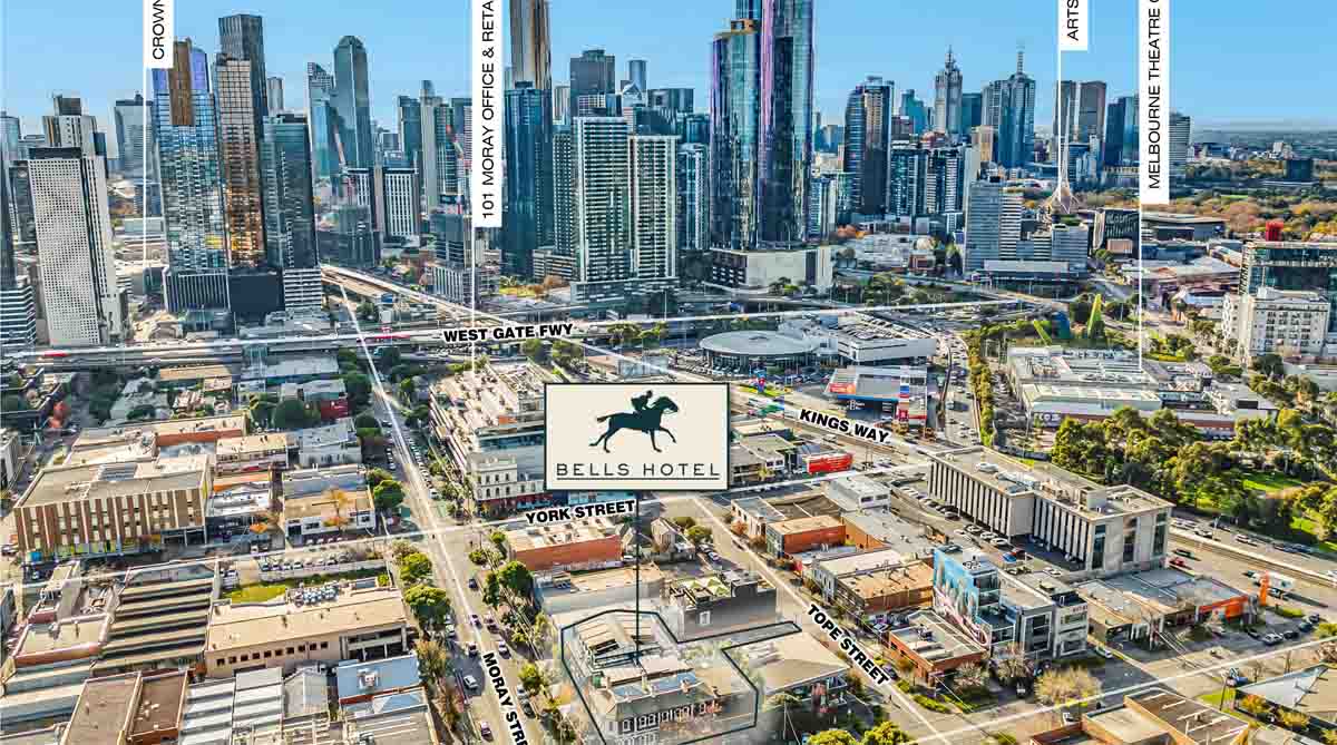 Bells is a landmark pub on a commanding corner of the busy intersection of Moray and Coventry Streets, with more than 60 metres street frontage, laneway access, and total site area of 1,161sqm. It opened in 1874 as Freer’s Family Hotel. Sam Tresise and Commercial Hospitality Group bought it in 2013.