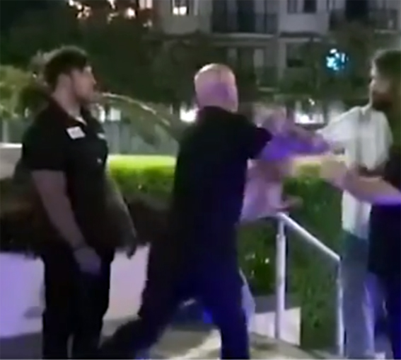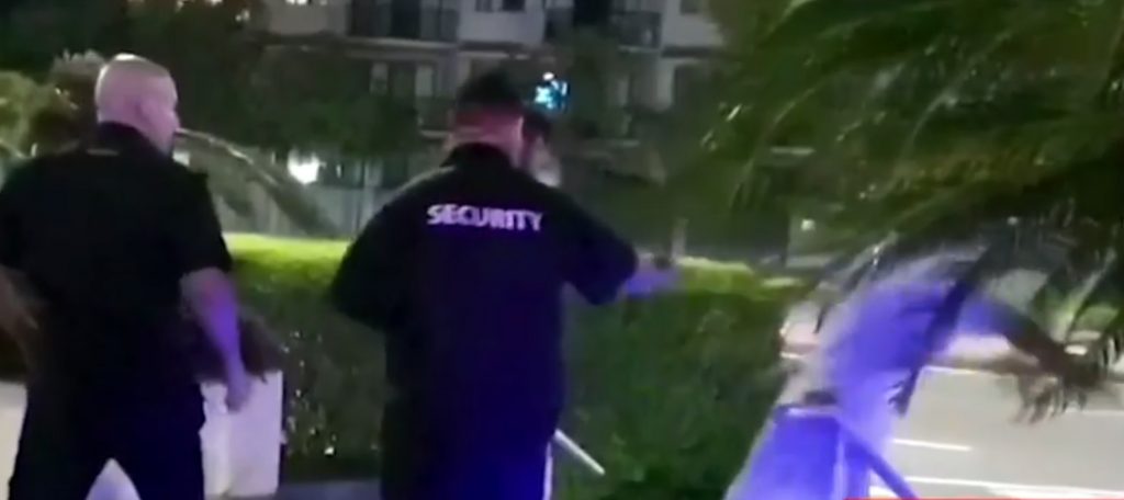 The video was taken by a bystander and grainy images showed the guards arguing with a man and woman near the Hotel’s stairs, on a night in mid-May.