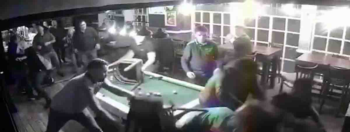 CCTV camera footage sourced by the Daily Mail filmed the entire sorry incident, as a dispute over a game of pool heated tempers until someone finally threw a punch.