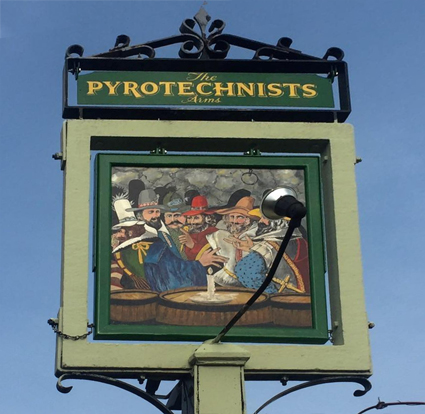 Although London’s The Pyrotechnists Arms once donned a sign depicting those involved in the infamous Gunpowder Plot of 1605, this is actually not the source of its name, which in fact comes due to its proximity to Brocks Fireworks – considered to be the oldest fireworks maker in England.