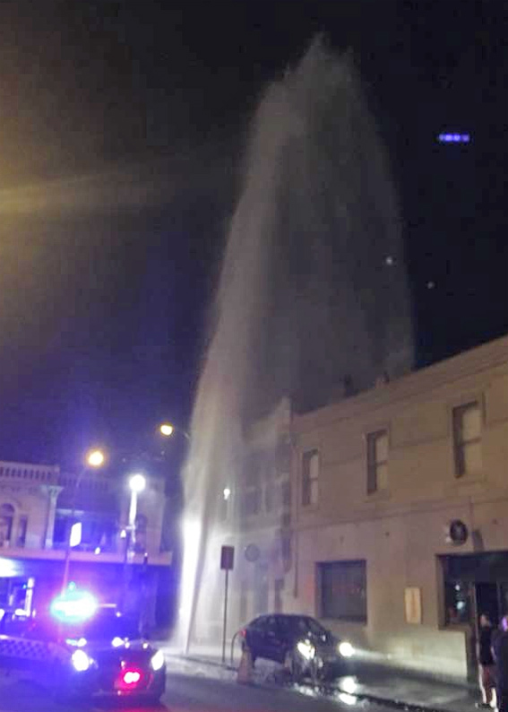 The broken hydrant let loose a column of water that towered over and rained down on the Hotel, causing damage and overflowing guttering. Staff became aware of water dripping inside and security were forced to evacuate the building.
