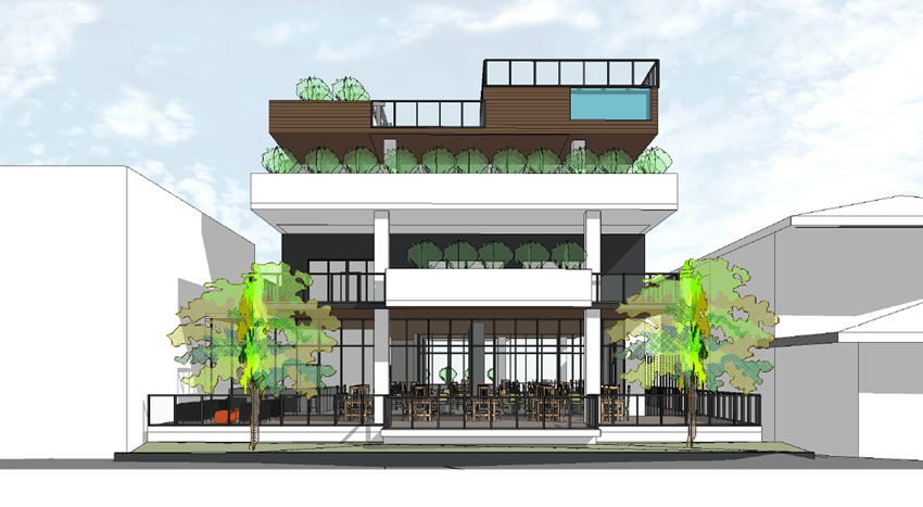 Wielding plans to demolish the existing Bay Motel, at 12 Bay Street, a new multi-level structure will encompass a pub-style hospitality venue on approximately 400sqm of internal area, and “as much outdoor seating area as the site can handle”. Upstairs will be four luxury half-floor apartments.