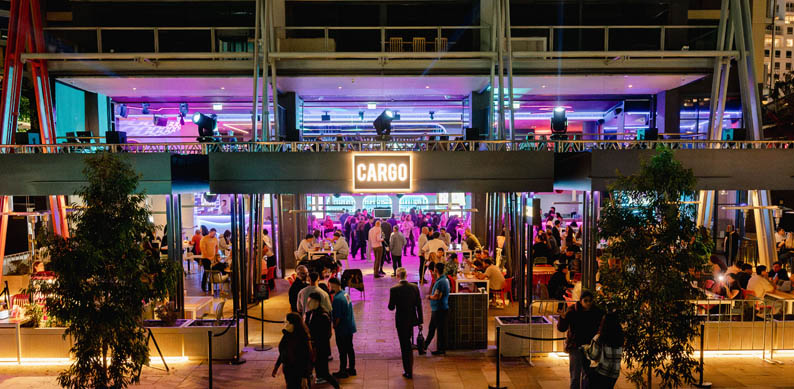 The space can transition from casual daytime dining to a bustling club at night, accommodating up to 500 guests. Cargo is open late Sunday through Thursday and until 3am on Fridays and Saturdays, continuing to host headline DJs.