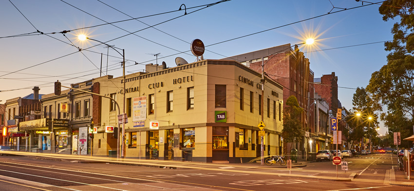 The two-storey Central Club Hotel sits at the intersection of Victoria and O’Connell Streets, with frontages on three streets.