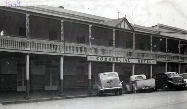 Built during the 1840s, the two-storey Commercial Hotel on Comur Street secured its first liquor licence in 1850. In its heyday it was the focus of local events, carrying a lasting legacy in the community.