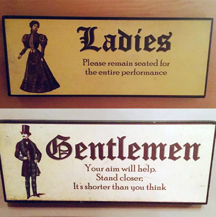At least one universal fact about people is that everybody must partake of the privy on a consistently regular basis, but the way venues around the world label female and male latrines is neither universal nor consistent.