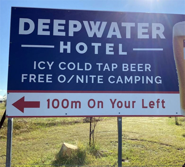 Like many pubs in country towns, Deepwater relies on the business that comes from passing travellers, who are apt to pulling up for a drink and a meal. The pub offers them no power or water, just overnight parking.