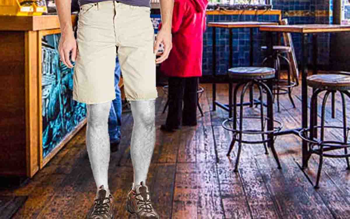ENTIRE PUB BLINDED BY MAN’S FIRST DAY OUT WEARING SHORTS SINCE JUNE