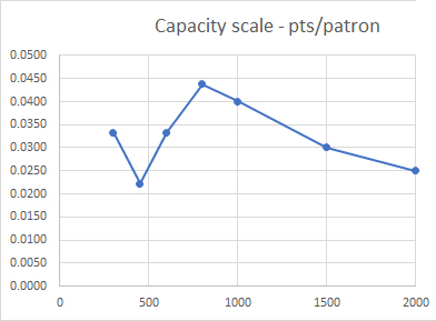The stepped capacity scale means venues with 800-1000 patrons are paying the most to bring them sports television, regardless of what they are doing in the pub.