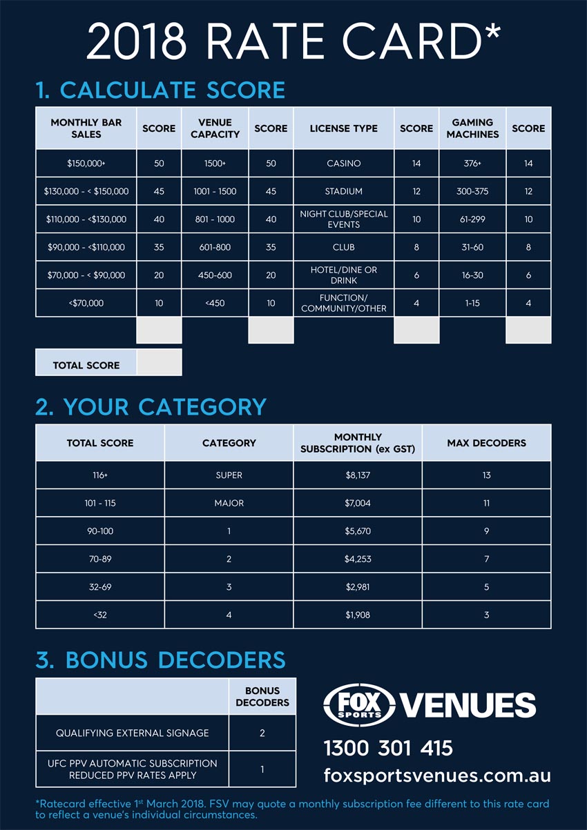 Fox Sports is rolling out new rates for select pubs around the country, with increases in the region of 30-50 per cent made possible by the current monopoly that is essential sports content.