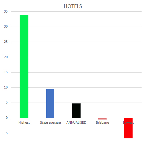 It found an average uplift in machine gross revenue in Queensland (March 2021 vs March 2019) across the two sectors of 9.5 per cent, representing an annual figure of roughly 4.7 per cent. This comes from a 10.7 per cent gain in clubs and 8.3 per cent in hotels.