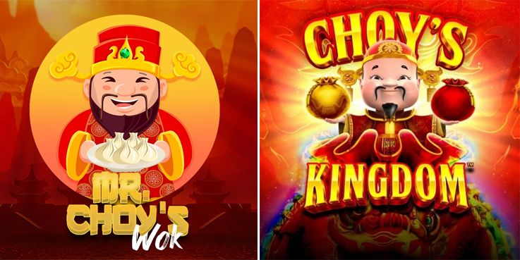 The Choy’s Kingdom image depicts an Asian man with bags of money.