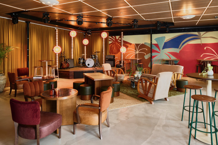 The retro feel was created by architects Alexander & Co, with murals by Tiarna Herczeg, Ash Holmes and Paul McNeil.