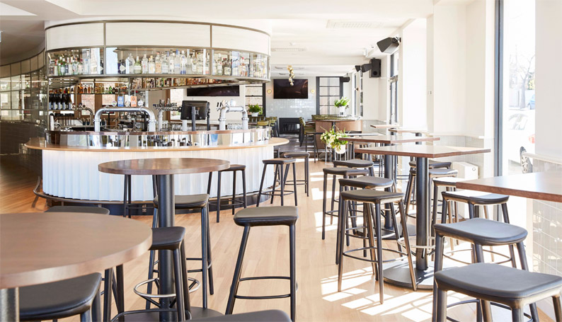 Today the striking two-storey hotel has benefited from significant refurbishments, offering a large public bar and dining space flooded with natural light. Upstairs has function spaces and balcony, serviced by a private bar.