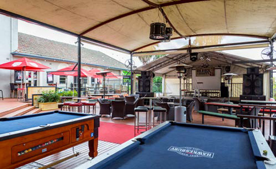 Street level is split, offering a single-operation public bar with TAB and dining area, overlooking a big beer garden, most of which is currently covered with a semi-permanent structure to increase appeal in inclement weather. There is a stage for live music, and the outdoor area can be accessed directly from the street, aiding egress after events.