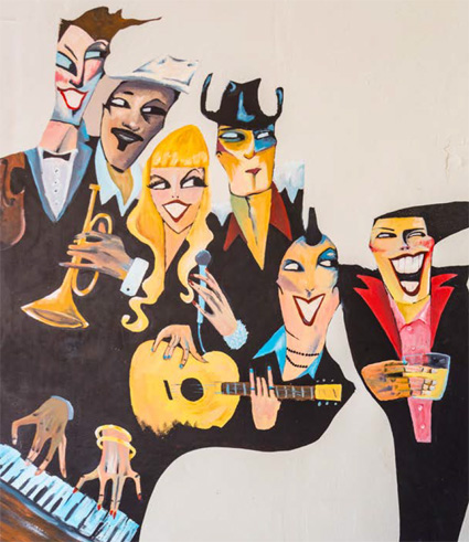 Upstairs, a corridor of musician caricatures are painted along the walls, leading to the ten newly refurbished accommodation rooms.