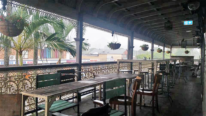 The Middle Pub, built 1904 and owned for the past four years by former Sydney hotelier Brenden Lawless, boasts a classic iron lacework-framed balcony along two sides.