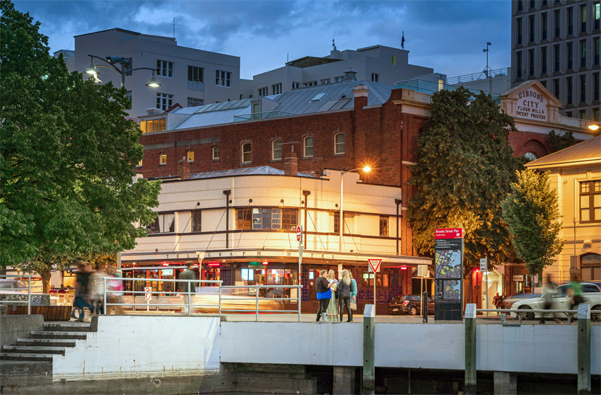 The two-storey Hotel occupies a corner of Morrison and Brooke Streets, just metres from Hobart’s popular waterfront, offering bar, kitchen, external licensed area, large basement and offices on the upper level, but no gaming.