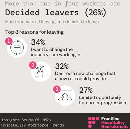 The research undertaken in February by Frontline Hospitality Recruitment (FHR) and social research agency McCrindle also showed that 26 per cent of hospitality workers had decided to leave their current role.