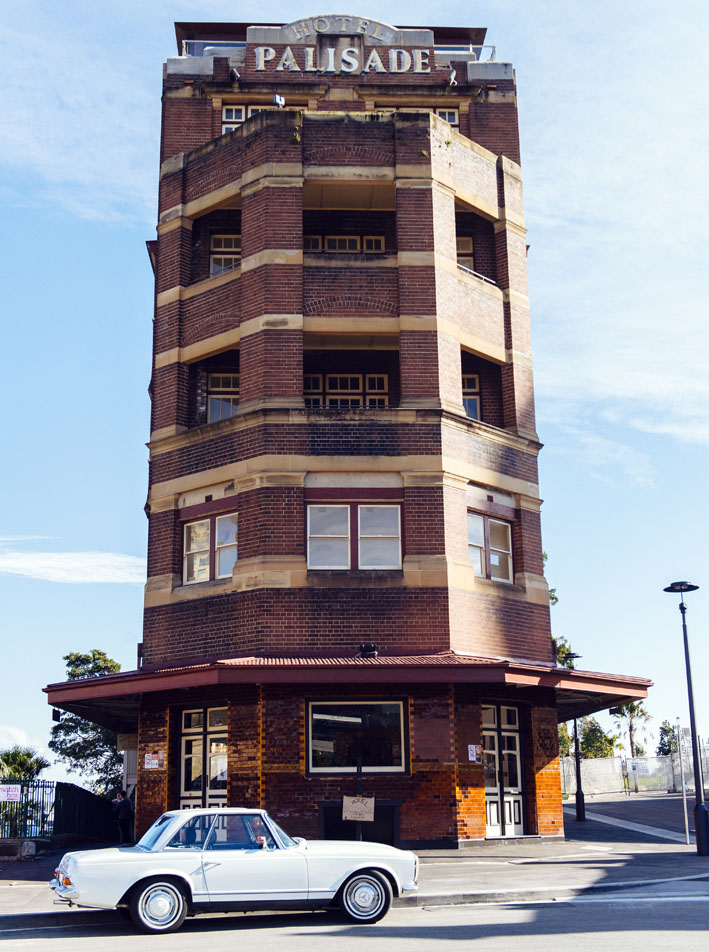 A hotel was first built on the Millers Point site of the Palisade back in 1880, beside the stake (palisade) fence in the street. The current structure was built in 1912 by the Sydney Harbour Trust for the port workers and local community.