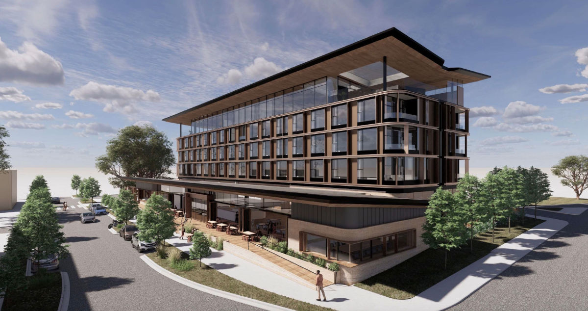 Seventy-seven accommodation rooms, including 26 serviced apartments and a honeymoon suite, will occupy three levels, accommodating guests visiting nearby health, leisure and education centres.