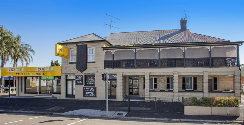 The Valley Hotel Motel is a handsome pub in the heart of Muswellbrook, also two-storey brick and occupying 3,357 m² at the junction of main roads through town Sydney and Maitland Streets. It features a public bar, gaming room with six PMEs, seven motel rooms with ensuites, nine pub-style accommodation rooms, beer garden, commercial kitchen, and function space. It boasts a 24-hour licence in the strong coal mining and agricultural town and is next door to the Muswellbrook Workers Club.