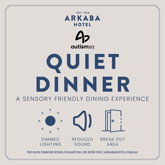 The Hurley Group has announced it is “proud to be” the first pub in the southern capital to collaborate with Autism SA, to host a Quiet Dinner at the Arkaba Hotel, in support of patrons on the spectrum.