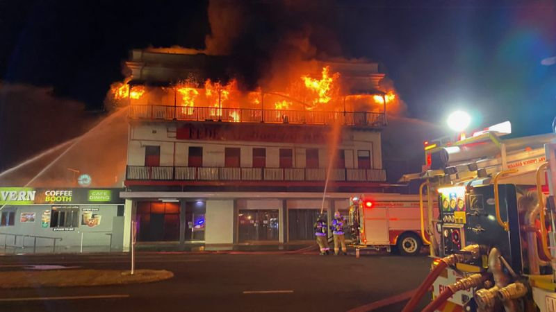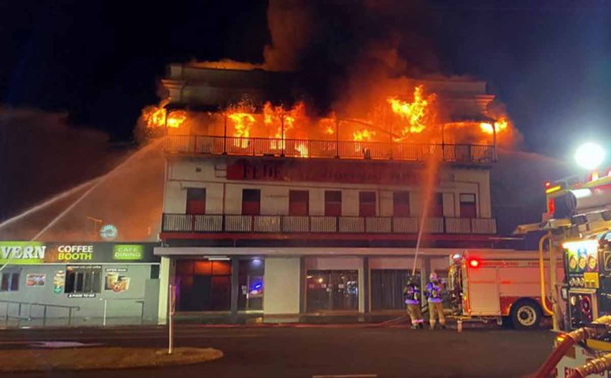 Around 11pm on Monday night a fire broke out at the Spotted Dog, on Bourbong Street, formerly known as the Federal Hotel. The blaze quickly spread to the associated Federal Backpackers structure next door.