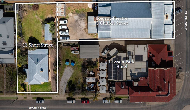 The combined business and freehold of Mudgee’s landmark Lawson Park Hotel are being offered for the first time in years, along with adjacent properties, hinting at major development potential.