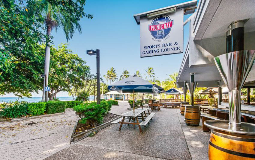 The Hotel, on Picnic Bay’s The Esplanade, sits on 1.1-ha, providing an indoor and outdoor restaurant, gaming area with Keno and TAB facilities and 20 EGMs, function centre, onsite and detached bottleshop, 23 motel rooms, swimming pool and owner’s accommodation.
