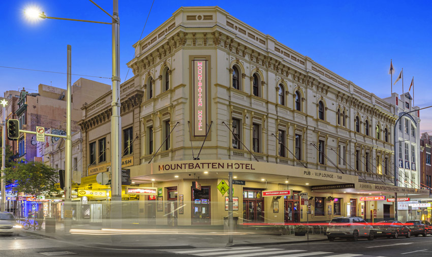 The Mountbatten is one of the true ‘locals’ of Sydney’s major boulevard, George Street, with an office workers’ happy hour from four ‘til six each weekday. It holds a 3am liquor licence and 25 gaming machines, with enviable three-hour weekend gaming shutdown.