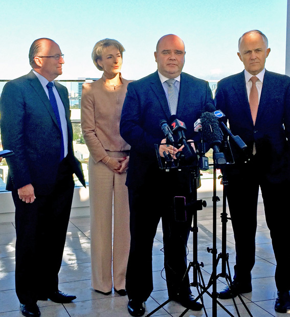 Member for Swan Steve Irons, Minister for Employment Michaelia Cash, AHA(WA) CEO Brad Woods, Prime Minister Malcolm Turnbull