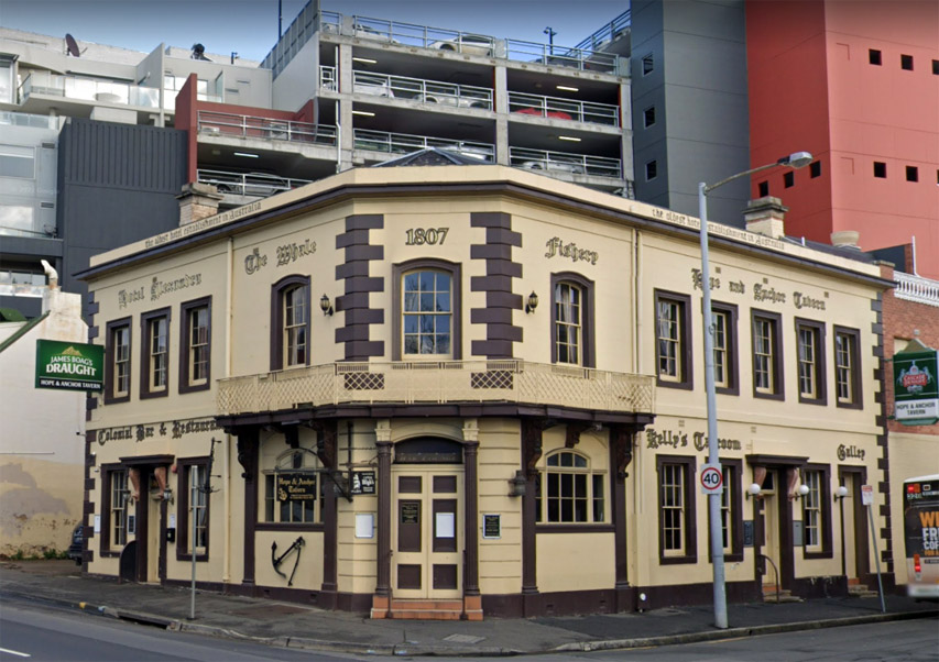 Built in 1807, the Hope and Anchor on the Hobart foreshore is thought to be the oldest continuously licensed pub in Australia. It has enjoyed time known as Hotel Alexander, The Whale, and conveniently, Kellys Tavern.
