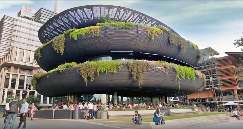 The striking three-storey circular building on Barangaroo South’s waterfront is a redefinition of Australian hospitality design, featuring multi-plane timber façade draped in an extensive green canopy.