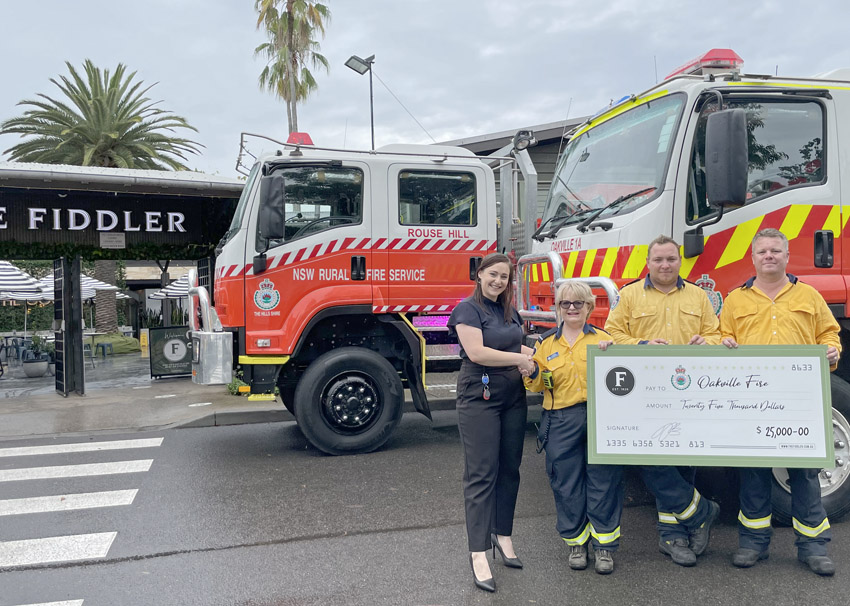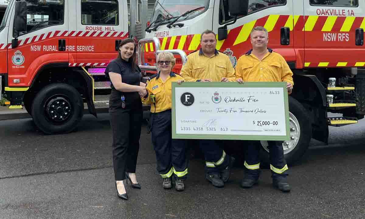 Cheques for $25,000 were presented to: Kellyville Fire and Emergency Public Fund, Rouse Hill Fire and Emergency Fund, Box Hill and Nelson Bush Fire Brigade, and Oakville Volunteer Bush Fire Brigade.