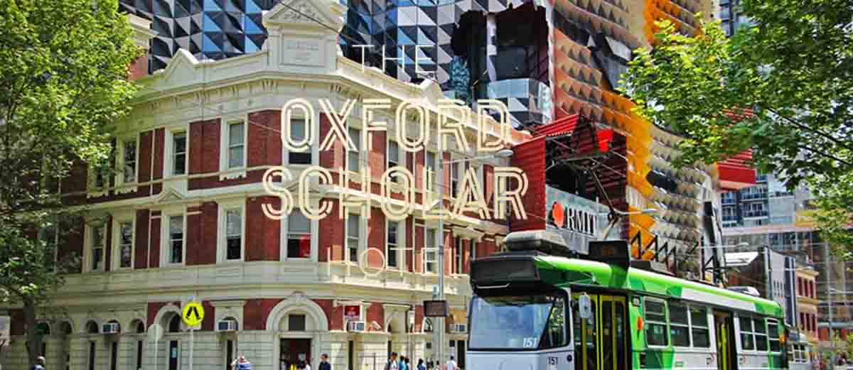 Built 1857, the Oxford Scholar is on land owned by RMIT (Royal Melbourne Institute of Technology), on the corner of Swanston and A’Beckett Streets.