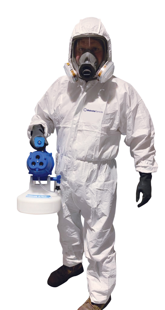 Mainstar employs a team of dedicated coronavirus cleaners armed with full PPE and state-of-the-art equipment including foggers, Hazguard suits, double-filter respiratory masks, sealed goggles and gloves.