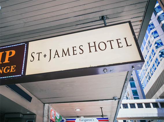 The St James Hotel is a tenancy occupying the lower three levels of a seven-storey heritage building at 114 Castlereagh Street. It is back-to-back with 139 Elizabeth Street, a four-storey structure counting Levendi Jewellers as its major tenant.