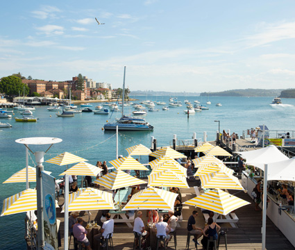 The iconic Manly Wharf Hotel is located within the historic wharf at Manly where the ferry docks, literally above the water lapping onto Manly Beach.