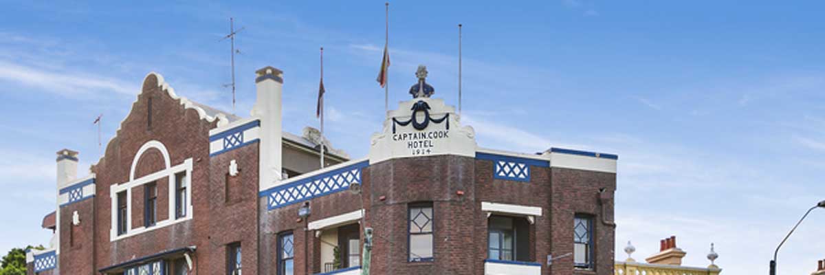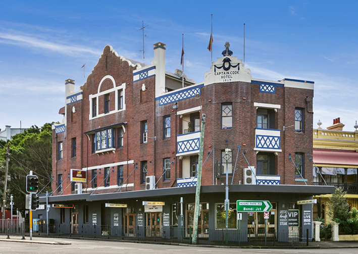 The four-storey Federation-style Captain Cook was built in 1914, overseeing the intersection of Flinders Street and Moore Park Road. It has long been a stop for sports enthusiasts on the journey to the former Allianz Stadium and Sydney Cricket Ground, and had gained a name for live music.