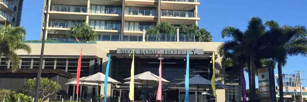 The award-winning Mon Komo Hotel overlooking Moreton Bay has been put to market by Kyko Group, alongside a collection of short-stay apartments of Oaks Mon Komo at the rear.