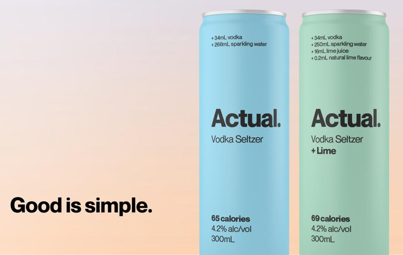 Carlton & United Breweries has followed suit with a new low-calorie hard seltzer – Actual – named and designed in response to consumer research finding younger consumers increasingly health conscious and looking for honesty and transparency in drinks.