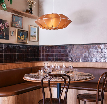 Works have required stripping decades of paint to reveal prized wood panelling, refurbishing the original fireplace, hanging new wallpaper and installing terrazzo bar tops and tables beside brown leather banquettes.