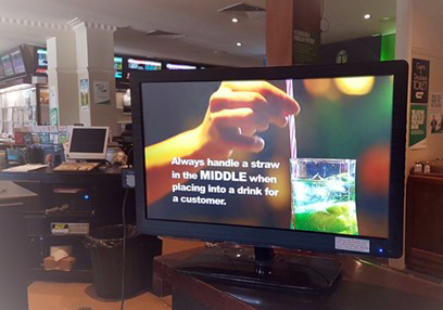 Each screen features a clear but poignant lesson for bar staff. A monitor set up facing the backbar can continually show the videos, providing an unobtrusive message that is repeated, to aid retention.