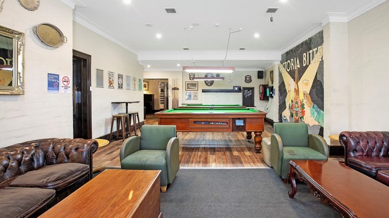 Street level offers a versatile layout with public bar, lounge seating, a billiards room, beer garden, and bottleshop. There is also a commercial kitchen and bistro, which is operated by a third party.