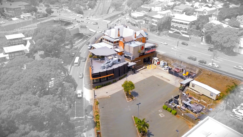 The huge 3,683sqm block is at Red Hill’s ‘Fiveways’ intersection of Musgrave Road and Countess Street, with significant height differential at the rear, currently the carpark, bringing major redevelopment potential. The upper levels of the Hotel already enjoy city views.