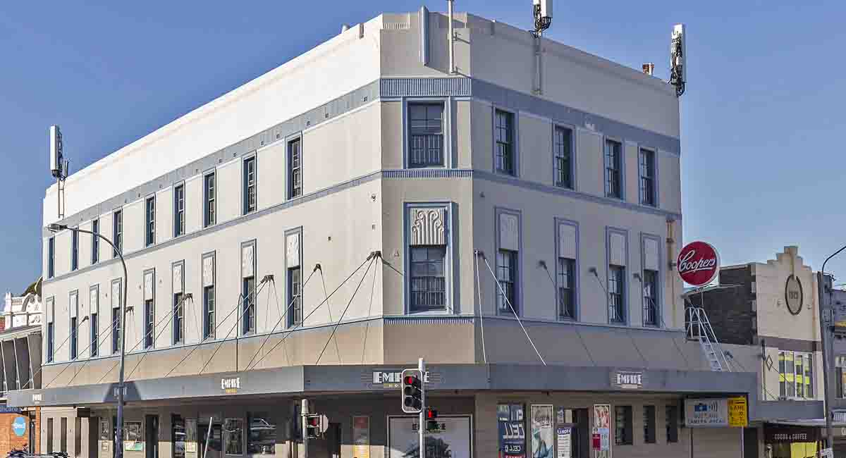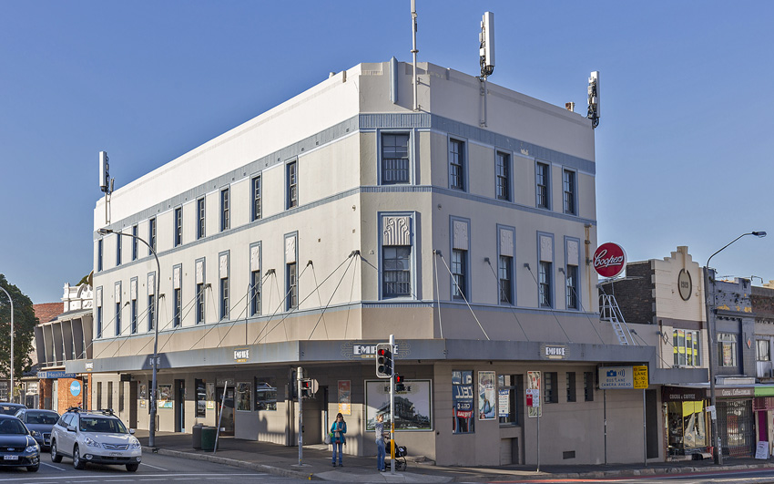 Built circa 1890 for Tooth’s & Co, the commanding three-storey pub, on a prominent 803sqm corner site, was refashioned in the twentieth century in a modernist, Art Deco styling.
